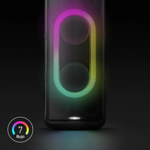 Ugrađena svetlosna animacija sa 7 boja i dva stroboskopa stvara efekat prave žurke, a korisnik može birati između više svetlosnih obrazaca