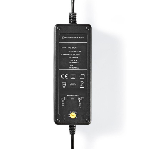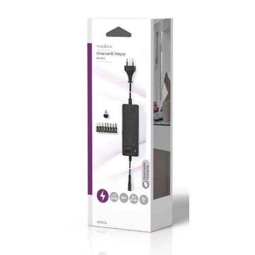 • Reverzibilni polaritet• Ručno podešavanje izlaznog napona• 8 adaptera za napajanje• Nivo efikasnosti VIOvaj kompaktni univerzalni adapter od 60wati ima podešavanje izlaznog napona između 6 i 16 volti. Adapter ima zaštitu od kratkog spoja i zaštitu od preopterecenja i isporučuje se sa 8 adaptera za napajanje. Zbog toga je adapter pogodan za širok spektar primena, uključujuci, na primer, laptopove.Širina: 138 mmVisina: 51 mmDubina: 35 mmTežina: 279 gBoja: CrnaMaterijal: ABSIzlazna snaga: 60 WTip napajanja: Napajanje iz mrežeUtikač: Tip C (CEE 7/16)Broj izlaza: 1Kabl za napajanje: A Euro / Tip C (CEE 7/16)Maksimalna potrošnja energije: 60WUlazna struja: 1,5 ADužina kabla: 1,10 mIzbor izlaznog napona: RučnoUređaj: UniverzalniTip izlaznog utikača: 5,0 x 2,1 mm5,5 x 2,5 mm3,5 x 1,35 mm3,5 x 1,1 mm4,0 x 1,7 mm4,8 x 1,7 mm5,5 x 2,1 mm6,3 x 3,0 mmDužina kabla adaptera za napajanje: 1,10 mUlazni napon: 100 - 240 V ACBroj proizvoda u pakovanju: 1 kom.Izlazna struja: 5,0 - 5,2 ABroj utikača 8 utikačaIzlazni napon: 6 - 16 V DCMaksimalna izlazna struja po portu: 5,0 A