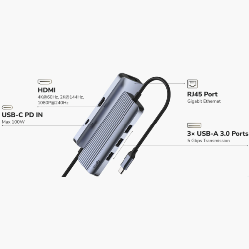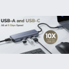 Verzija modela: UH606 1.0Interfejsi-Uzvodna veza: 1× USB-C 3.2 Gen 1 muški konektor (5 Gbps)-Video izlaz: 1× HDMI 2.0Rezolucije video izlaza:-4K (4096×2160) 60 Hz-2K (2560×1440) 144 Hz-1080P (1920×1080) 240 Hz-Režimi video izlaza: Proširenje, Ogledalo (Android telefon podržava samo režim ogledala)-USB portovi: 3× USB-A 3.2 Gen 1 portovi (5 Gbps)-Mreža: 1× Gigabitni RJ45 port-Mrežna funkcija: Wake on LAN-Ulaz za napajanje: USB-C port-Metodi napajanja: DC / PD-DC: 5~20V 0~5A-Maksimalna potrošnja energije (W): 100W ako se napaja preko PD adaptera; 10W ako se napaja preko USB-a klijenta-Potrošnja energije u stanju mirovanja (W) 0,4 WFizičke karakteristike -Srebrno siva boja-Kućište:Aluminijum, ABSZahtevi-Hardverski zahtevi: Potreban je USB-C 3.2 Gen 1 / USB4 / Thunderbolt 3/4 port na glavnom uređajuKompatibilni operativni sistemi:-Windows 7 ili noviji-macOS 10.12 ili noviji-Ubuntu LTS 18.04 ili noviji-Android 5 ili noviji-ChromeOS R41 ili novijiInstalacija drajvera: Automatska instalacija drajvera za Windows 10/11 PC, Mac računare sa M čipsetom.Na drugim platformama može biti potrebna ručna instalacija drajvera.Pouzdano okruženje-Radna temperatura: 0~40 °C (-32~104 °F)-Temperatura skladištenja: -20~70 °C (-10~158 °F)-Radna vlažnost: 20~85% relativne vlažnosti bez kondenzacije-Vlažnost skladištenja: 10~90% relativne vlažnosti bez kondenzacije-težina proizvoda: 78,2 g (2,76 oz.)Dimenzije glavnog dela:-113,1×44,2×15,7 mm-4,45×1,74×0,62 inčaKabl:-200 mm-7,87 inčaSadržaj paketa-UH606-Uputstvo za instalaciju