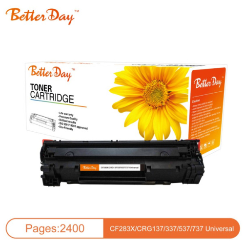 Link proizvođača: www.betterdaytoner.comKompatibilnost: CF283X, 83A CRG137/337/537/737 Za upotrebu u: HP: LaserJet Pro M201dw LaserJet Pro M201n LaserJet Pro MFP M125a LaserJet Pro MFP M125nwLaserJet Pro MFP M127fnLaserJet Pro MFP M127fwLaserJet Pro MFP M225dnLaserJet Pro MFP M225dwCANON:i-SENSYS/MF210w/211w/212w/215n/216n/217w/221d/222dw/223d/226dn/229dw/224dwimageCLASS MF215/216n/223d/LBP151dwDimenzija kutije: 480*310*385 mmzamenska toner kasetaKapacitet (broj strana) za A4: 2400strana pri 5% pokrivenosti