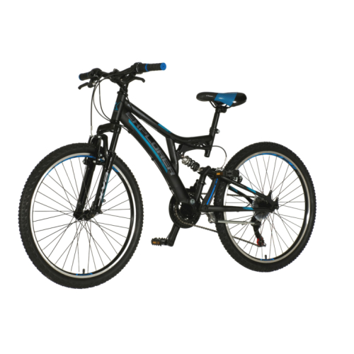 U pogledu udobnosti vožnje po izuzetno zahtevnom terenu, full suspension vile koje ovaj model poseduje daće Vam pravi odgovor. Ovaj Mtb se može pohvaliti ergonomski dizajniranim sedištem koje odgovara anatomiji svakog bicikliste. Bicikl je opremljen V-brake kočnicama koje omogućavaju preciznost u kočenju. Izdržljiv čelični ram, interesantnog dizajna i aktuelnih boja. Brižljivo dizajniran bicikl, čvrst i trajan za brdsku vožnju.