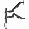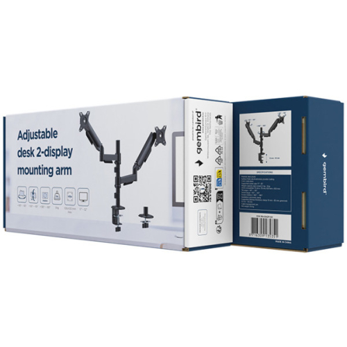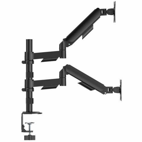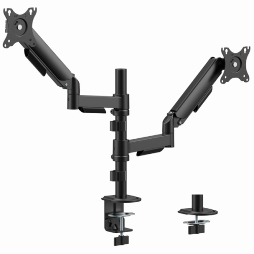 Savrseno pozicionirajte svoj ekranLagan i nagibni dizajnMontiranje na stub za lako podesavanje visine- Nosac za monitor sa dvostrukim drzacem za monitor- Ruke se rotiraju, izvlace i uvlace, naginju za promenu ugla citanja i omogucavaju rotiranje ekrana iz pejzaznog u portretni rezim, itd.- Omogucava lako ergonomsko pozicioniranje za smanjeno naprezanje- Montiranje na stub za lako podesavanje visine- Radi sa skoro svim LCD monitorima (maks. 32")- Izdrzljiva podesiva gasna opruga pogodna za monitore do 9 kg- Ugradjeno upravljanje kablovima za organizovan i uredan radni prostor- Cvrsta stezaljka za sto ili usica za lako i sigurno fiksiranje na vasem stolu- Ploca za montazu monitora (VESA) sa otvorima za kljucaonicu za laku instalaciju- VESA kompatibilno, maks. 100 x 100 mmMaterijal: Celik, plastikaPovrsinska zavrsna obrada: Elektroforeza, praskasti premazBoja: fino teksturirana crnaPodrzana velicina ekrana: 17" - 32"Nosivost (po ekranu): 2 ~ 9 kgVESA kompatibilno: 75x75, 100x100 mmOpseg nagiba: +90° -90°Opseg okretanja: +90° ~ -90°Rotacija ekrana: +180° ~ -180°Instalacija: usica, stezaljkaPreporucena debljina radne povrsine: stezaljka: 10 ~ 80 mm, usica: 10 ~ 40 mmUpravljanje kablovima: daInstalacija: usica, stezaljkaPreporucena debljina radne povrsine: stezaljka: 10 - 80 mm, usica: 10 - 48 mmUpravljanje kablovima: da
