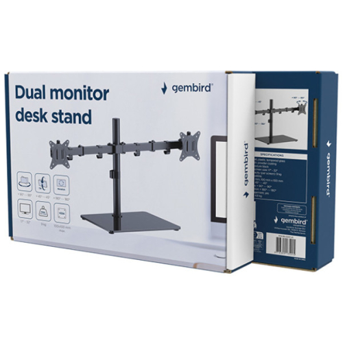 Stilan dizajn sa postoljem od kaljenog staklaSavršeno pozicionirajte ekranLagan i nagibni dizajn- Nosac za sto za monitor sa dvostrukim krakom za monitor- Krakovi omogucavaju okretanje, produzavanje, uvlacenje ili naginjanje ekrana i omogucavaju rotiranje ekrana iz pejzaznog u portretni rezim itd.- Radi sa skoro svim LCD monitorima (maks. 32")- Stabilna staklena podloga za sigurno postavljanje na bilo koji sto- Ugradjeno upravljanje kablovima za organizovan i uredan radni prostor- VESA kompatibilno, maks. 100 x 100 mmMaterijal: Celik, plastika, kaljeno stakloPovršinska završna obrada: praskasti premazBoja: fino teksturirana crnaPodrzana velicina ekrana: 17" - 32"Nosivost (po ekranu): 9 kgVESA kompatibilno: 100x100, 75x75 mmOpseg nagiba: +45° ~ -45°Opseg okretanja: +90° ~ -90°Rotacija ekrana: +180° ~ -180°Upravljanje kablovima: daNeto tezina: 4,95 kg