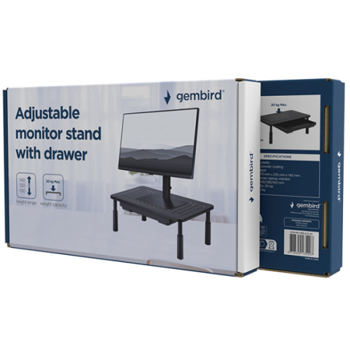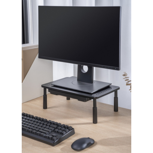Postavite ekran savrseno da biste smanjili naprezanje vrata i ocijuPrakticna fioka za odlaganje olovaka, memorijskih kartica, beleski itd.- Celicni postolje za monitor/laptop sa podesivom visinom- Prakticna fioka za odlaganje vasih kancelarijskih potrepstina- Kompaktni pravougaoni dizajn, savrseno se uklapa na bilo koji sto- 3 podesavanja visine za optimalnu visinu gledanjaMaterijal: celik, plastikaPovrsinska zavrsna obrada: praskasti premazBoja: mat crnaDimenzije: 370x235x140 mmPrimenljivi uredjaji: laptop, monitorRaspon visine: 100/120/140 mmNosivost: 20 kgNeto tezina: 1,1 kg