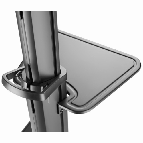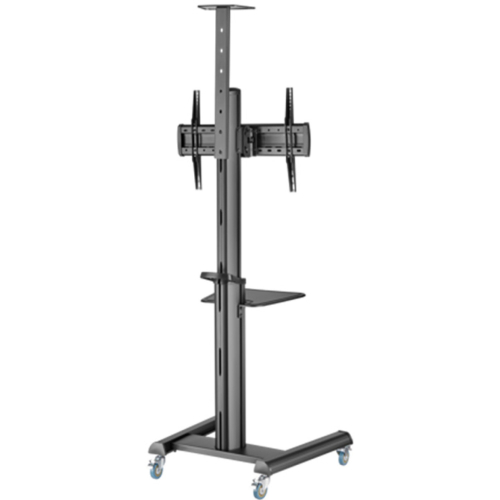 Lako premestite svoj TV na bilo koju lokacijuBrzo i jednostavno pomeranje uz prakticnu ruckuSavrseno za kancelarijsku i obrazovnu upotrebu- Aluminijumski podni stalak za TV sa tockovima- Celicna konstrukcija od cvrstog celika sa integrisanim podesavanjem visine TV-a- Prakticna polica sa podesivom visinom za opremu ili kameru- Izdrzljivi tockovi sa mehanizmom za zakljucavanje i prakticnom ruckom u obliku D-prstena za lako pomeranje- Podrzava vecinu LCD televizora od 37” do 70”- VESA kompatibilno, maks. 600 mm x 400 mmMaterijal: CelikOdgovara veličini ekrana: 37" - 70"VESA kompatibilnost: 300 x 300, 600 x 400, 200 x 200, 400 x 400, 300 x 200, 400 x 200, 400 x 300Nosivost televizora: 70 kgOpseg nagiba: +5° / -12°Opseg okretanja: N/DRotacija ekrana: 0° / +90°Podesiva visina televizora: daNosivost police: 5 kgUpravljanje kablovima: daDimenzije: 772 x 648 x 2157 mm