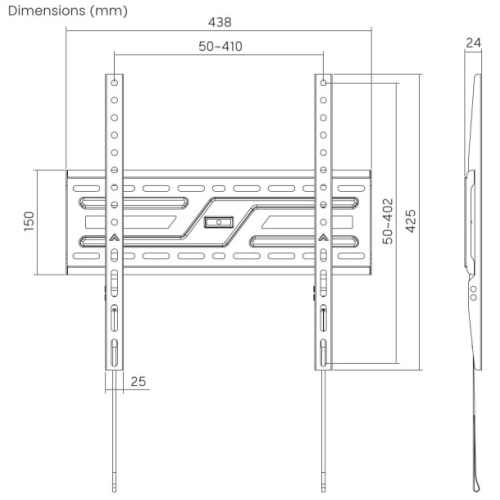 Savrseno pozicionirajte ekranLagan i ravan dizajn- Zidni nosac za LCD ekran od izdrzljivog celika- Podrzava vecinu LCD televizora od 32” - 75”- VESA kompatibilan, maks. 400 mm x 400 mm- Automatske opruzne brave sa kablovima za brzo otpustanje omogucavaju brzo i jednostavno fiksiranje i uklanjanje televizora- Prakticna integrisana libela za savrseno poravnanje- Udaljenost od zida: 24 mm- Ukljucuje sav potreban materijal za montazuMaterijal: celikPovrsinska zavrsna obrada: praskasti premazBoja: crna sa finom teksturomPodrzana velicina ekrana: 32"- 75"VESA kompatibilno: 75x75, 100x100, 100x150, 150x100, 100x200, 200x100, 150x150, 200x200, 200x300, 300x200, 200x400, 400x200, 300x300, 300x400, 400x300, 400x400Nosivost: 75 kgProfil: 24 mmOpseg nagiba: n/dOpseg okretanja: n/dNivo ekrana: n/dMontaza: puni zid, dvostruki stub (406 mm)