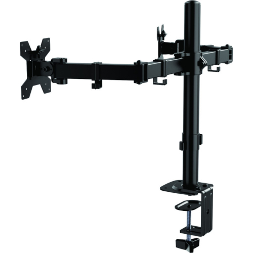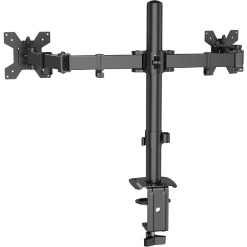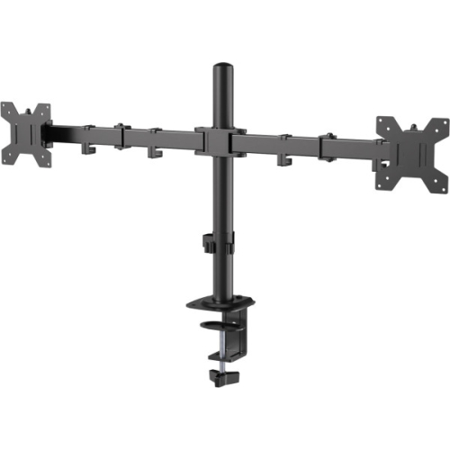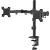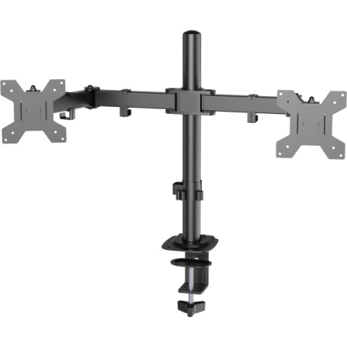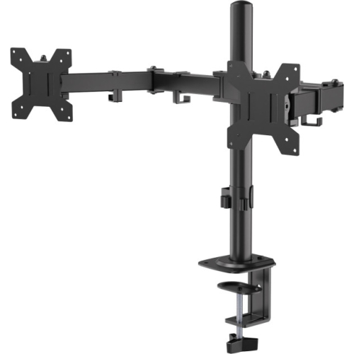 Postavite ekran savršeno-Montaža za sto za monitor sa dvostrukom rukom za monitor-Ruke omogucavaju okretanje, proširenje, uvlacenje ili naginjanje vašeg ekrana i omogucavaju rotiranje ekrana iz pejzažnog u portretni režim itd.-Radi sa skoro svim LCD monitorima (max. 32")-Snažna stezaljka za radni sto ili otvor za lako i sigurno pricvršcivanje na vaš sto-Ugradeno upravljanje kablovima za organizovan i uredan radni prostor-VESA kompatibilan (100x100mm i 75x75mm)Materijal: celik, plastikaPovršinska obrada: praškasti premazBoja: crna fine tekstureOdgovara velicini ekrana: 17" - 32"Kapacitet težine (po ekranu): 9 kgVesa kompatibilan: 100x100, 75x75 mmOpseg nagiba: +45° ~ -45°Opseg okretanja: +90° ~ -90°Rotacija ekrana: +180° ~ -180°Montaža: spojnica, stezaljkaPreporucena debljina radne površine: stezaljka: 20 ~ 80 mm, otvor: 10 ~ 65 mmUpravljanje kablovima: daNeto težina: 2,7 kg