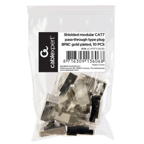 Pakovanje sadrži 10 kom.Modularni prolazni CAT7 utikač 8P8C pozlacen 15u”Zašticeni konektor, za zašticene LAN kablove (FTP, SFTP)