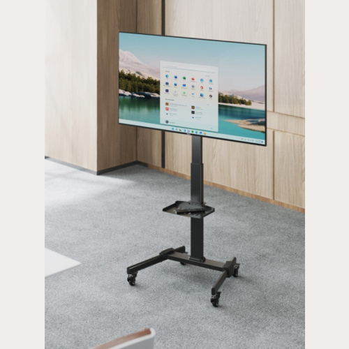 Lako premestite svoj TV na bilo koju lokaciju.Savršeno za kancelarijsku i obrazovnu upotrebu.-Metalni podni stalak za TV sa točkovima-Jednostavno podešavanje visine TV-a pomocu brzog otpuštanja opruge-Praktična polica za opremu ili materijal-Izdržljivi točkovi sa mehanizmom za zaključavanje-Podržava vecinu LCD televizora od 32” do 55”-VESA kompatibilno, max. 400 mm x 400 mmMaterijal: čelik, plastikaVeličina ekrana: 32" - 55"VESA kompatibilnost: 100x100, 200x100, 200x200, 300x200, 400x200, 300x300, 400x300, 400x400Nosivost televizora: 35 kgOpseg nagiba: +10° ~ -10°Opseg okretanja: N/DRotacija ekrana: N/DPodesiva visina televizora: daNosivost police: 5 kgUpravljanje kablovima: daNeto težina: 11,5 kgDimenzije: 677x540x1240~1540 mm