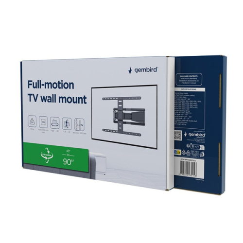 Savršeno pozicionirajte ekran.Lagan i pokretljiv dizajn.Ultra tanak zidni nosač za TV sa dvostrukim krakom i potpunim pokretomPodržava vecinu LCD televizora od 43” do 90”VESA kompatibilan, maks. 600 mm x 400 mmOmogucava okretanje do 60 stepeni i naginjanje od 18 stepeniUdaljenost od zida: 19,5 - 250 mmUključuje sav potreban materijal za montažuMaterijal: čelikPovršinska završna obrada: praškasti premazBoja: crna sa finom teksturomOdgovara veličini ekrana: 43" - 90"Kompatibilno sa VESA: 100x200, 200x200, 200x300, 300x200, 200x400, 400x200, 300x300, 300x400, 400x300, 600x200, 400x400, 600x300, 600x400Nosivost: 50 kgProfil: 19,5-250 mmOpseg nagiba: +3° ~ -15°Opseg okretanja: +30°~-30°Nivo ekrana: +3°~-3°Montaža: čvrsti zid, dvostruki stub (406 mm/450 mm)