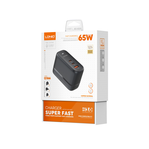 KUCNI PUNJAC LDNIO Q366 65W GAN TYPE-C NA TYPE-C CRNI