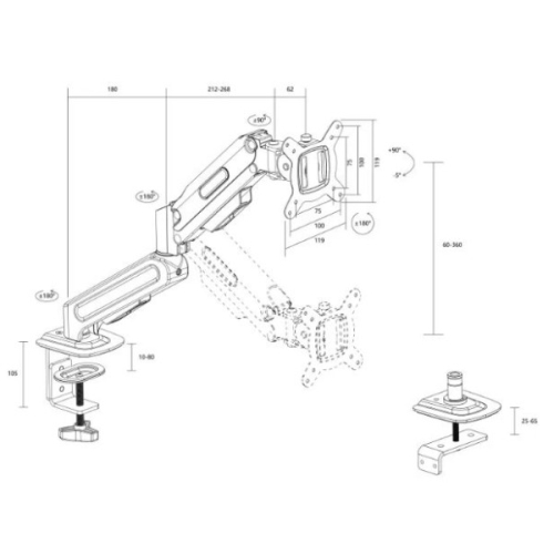 Tip nosača: Desktop, jednokraki, gasna opruga