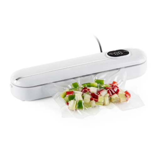 -Usisavanje suvih i vlažnih namirnica-Funkcija zavarivanja (zatvaranja)-Funkcija usisavanja i zavarivanja-Pogodno za kese i rolne folije-Usisavanje sa pritiskom: -62 kPa-Maksimalna širina kese: 250 mm-Maksimalna velicina kese – 250 mm (250 × 250 × 250 mm)-Digitalni brojac za pracenje procesa-Usisavanje direktnim usisom-Zaštita od pregrevanja i preopterecenja-90 W, 220–240 V / 50–60 Hz