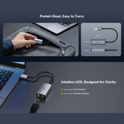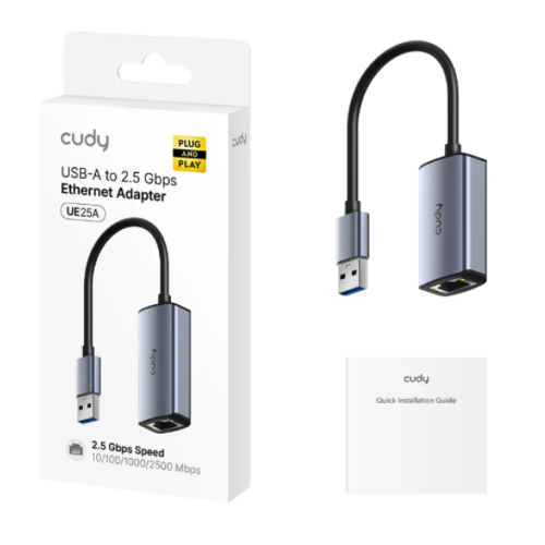 USB-A 3.0 na 2.5G RJ45 adapter (dongle) za nadogradnju vašeg PC-ja, laptopa ili NAS-a ultra-brzom žicanom mrežnom vezom. Kompaktan je i ne zahteva instalaciju drajvera, podržava plug-and-play i ima funkciju Wake-on-LAN za daljinski pristup.-Ethernet port: 10 / 100 / 1000 / 2500 Mbps-Plug and Play-Wake-on-LAN, Flow Control-Radi sa PC / Mac / iPad / iPhone / Android uredajima.Verzija modela: UE25A 1.0Interfejsi:-Mreža: 1× 2.5G RJ45 port-LED indikator: Link/ACT za svaki Ethernet portMehanicke karakteristike:-Težina proizvoda: 28,6 g (1,01 oz)Dimenzije:-Glavni deo: 56×27×16 mm (2,2×1,06×0,63 inca)-Kabl: 150 mm (5,91 inca)Sadržaj pakovanja:-UE25A-Uputstvo za instalaciju