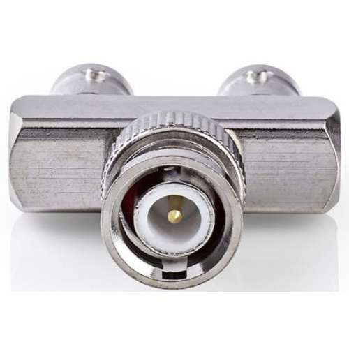 CVGP01946ME, BNC ADAPTER, BNC MUŠKI, 2X BNC ŽENSKI, NIKLOVANI, 50 OMA, METAL, SREBRNO, 1 KOM