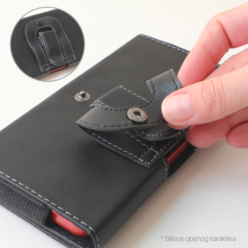 Magnetno zatvaranje obezbeđuje da vaš telefon ostane bezbedno u torbici, dok dugme i kopča za kaiš nude jednostavne opcije za nošenje - pričvrstite je za kaiš ili je zakačite. Ima mekanu unutrašnjost koja štiti vaš telefon od ogrebotina.