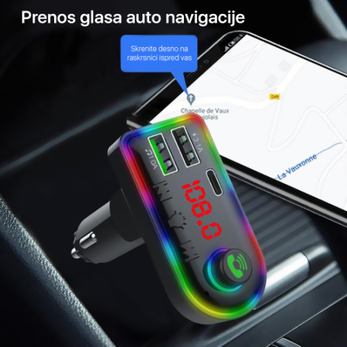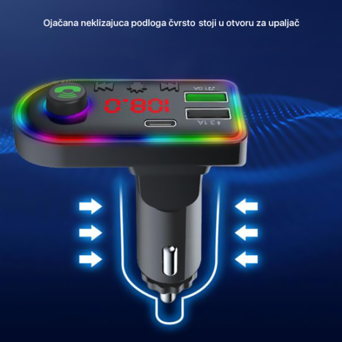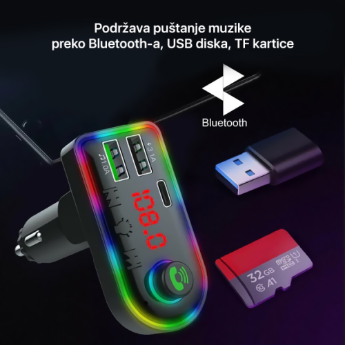 Verzija sa LED pozadinskim osvetljenjem u 7 boja: Ovaj Bluetooth radio predajnik podržava 7 boja svetla