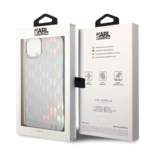 TORBICA KARL LAGERFELD HC MONOGRAM IRIDESCENT ZA IPHONE 14 6.1 SREBRNA (KLHCP14SLGMMSV3)