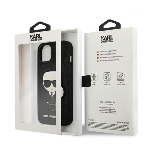 TORBICA KARL LAGERFELD HC SAFFIANO IKONIK PATCH ZA IPHONE 13 6.1 CRNA (KLHCP13MOKPK)