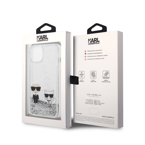 TORBICA KARL LAGERFELD HC LIQUID GLITTER KARL&CHOUPETTE ZA IPHONE 14 6.1 SREBRNA (KLHCP14SGKCS)