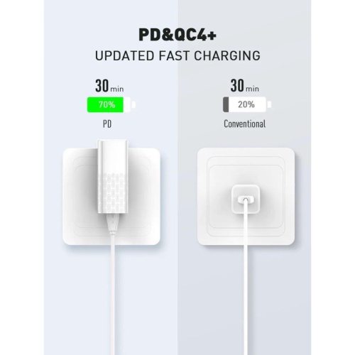 Input: AC100-240V 50-60Hz 850mAOutput PD: 5V-3A, 9V-3A, 12V-3A, 15V-2.5A, 20V-2AOutput QC4+: 3.3V/16V-3ATotal power 40W