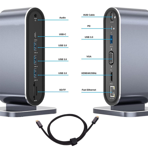 ADAPTER TYPE C NA LAN GB, SD CARD, TF, PD, TYPE C, 4XUSB 3.0, AUDIO, HDMI I VGA 12 U 1 SA POSTOLJEM