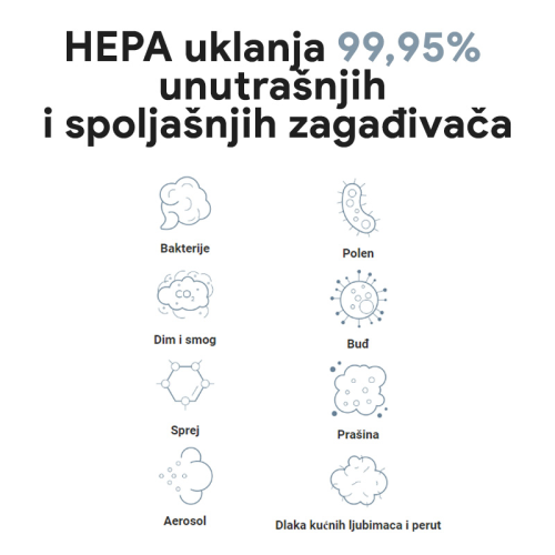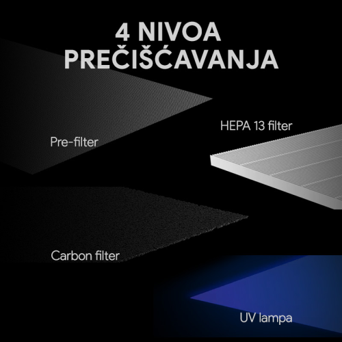 Filtracija: HEPA filter H13 + predfilter + filter sa aktivnim ugljem: da