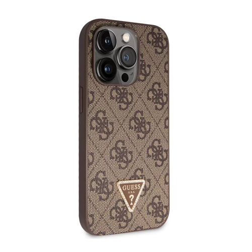 TORBICA GUESS HC PU LEATHER 4G TRIANGLE STRASS ZA IPHONE 15 PRO 6.1 BRAON (GUHCP15LP4TDPW)