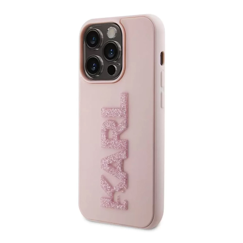 TORBICA KARL LAGERFELD 3D RUBBER GLITTER LOGO ZA IPHONE 15 PRO MAX 6.7 ROZE (KLHCP15X3DMBKCP)