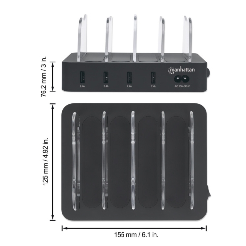 Link USB punjač 4-port Manhattan 102261 5V/2.4V/34W/držač za telefon Crni