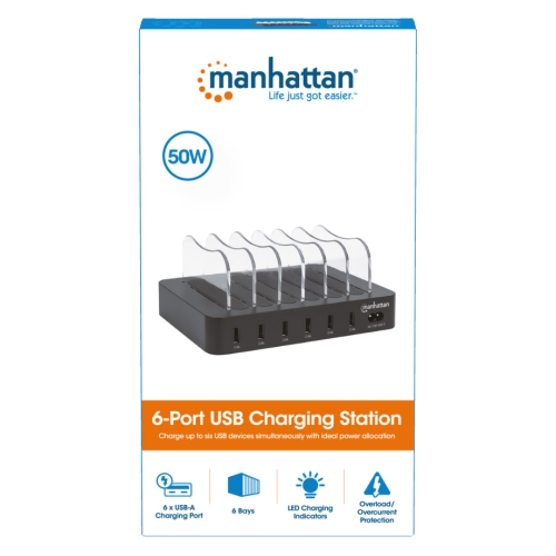 Link USB punjač 6-port Manhattan 102254 5V/2.4V/50W/držač za telefon Crni